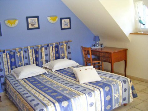 Visité par l'Office de Tourisme. A l'étage avec entrée indépendante, 2 chambres séparées par un reposant petit salon (douche, lavabo et wc dans chaque chambre) : 1 chambre 1 lit 1.60 m - 1 chambre 2 lits jumeaux 0.90 m. Parking. Cour, jardin, salon de jardin. Accès wifi. Françoise & Yves vous accueillent dans cette agréable maison située à 400 m du centre ville de Plouha. Idéalement située à proximité de la mer entre St-Brieuc et Paimpol, à proximité des commerces et restaurants.